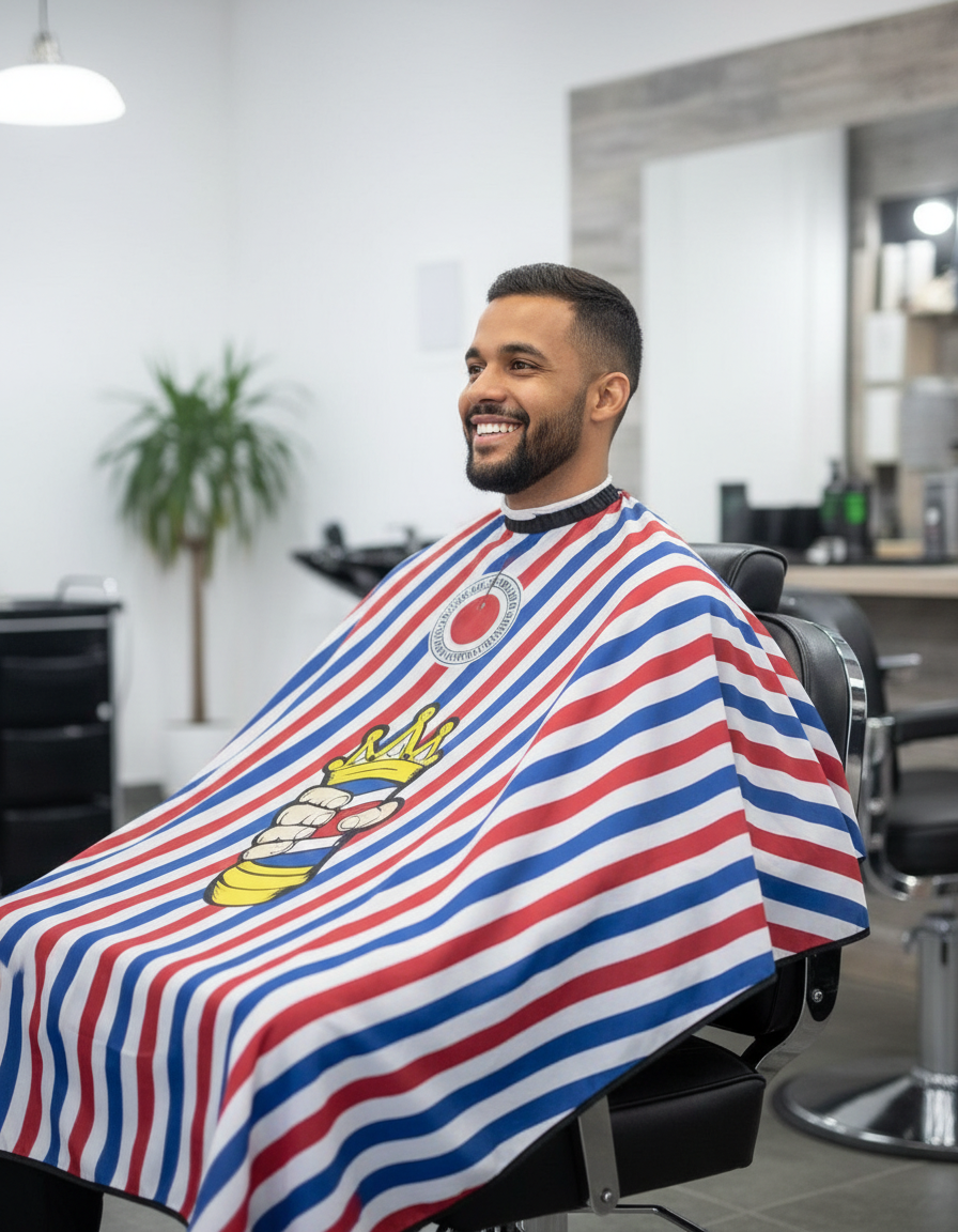 MATERIALES Y COMODIDAD Fabricada en material ligero y resistente, protege la ropa del cliente de cabellos y productos.